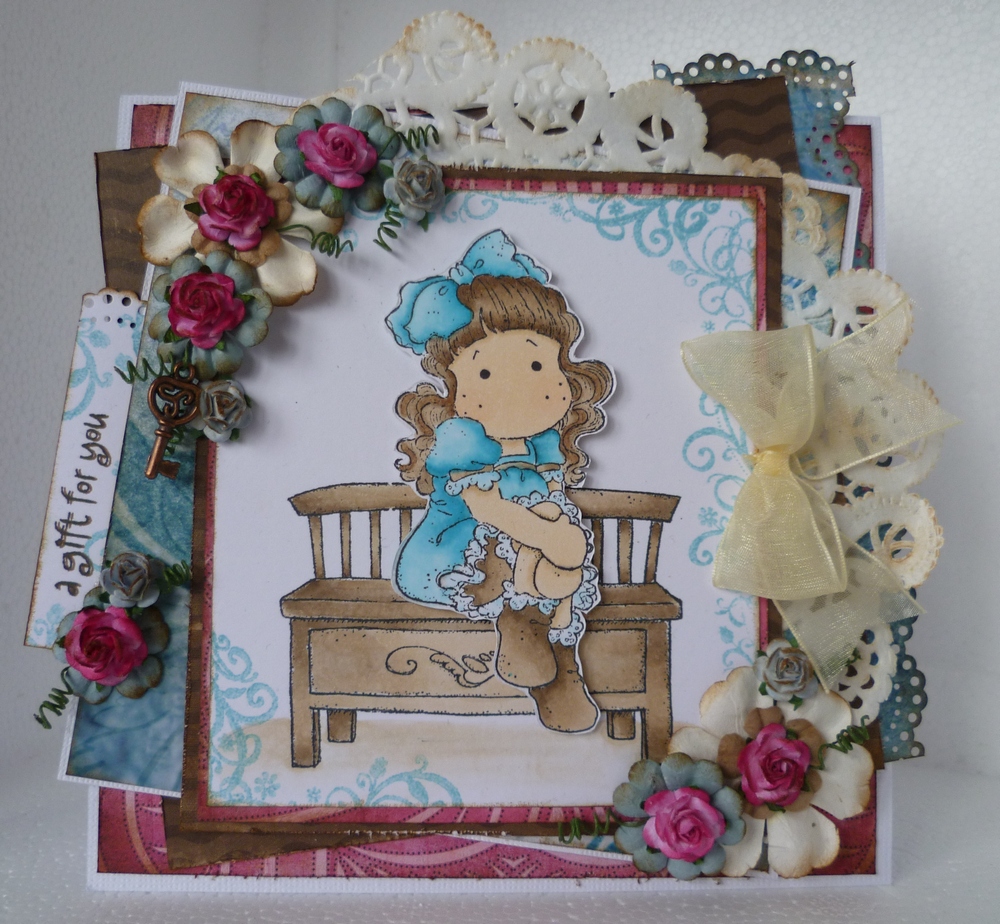 Na heeeeeeeeeeeel lang geen kaarten meer geplaatst te hebben is hier eindelijk weer een nieuwe. Ik heb gebruik gemaakt van de nieuwe magnolia collectie .Papier is van Prima, Basic grey en Co'ordinations. De stempel " a gift for you" is van Hero Arts. Het papier is bewerkt met een schaar en vervolgens met Tim holtz distress inkten ( vintage photo). alles is op een witte basis ondergrond aangebracht. De bloemen zijn van Prima en WildOrchid.